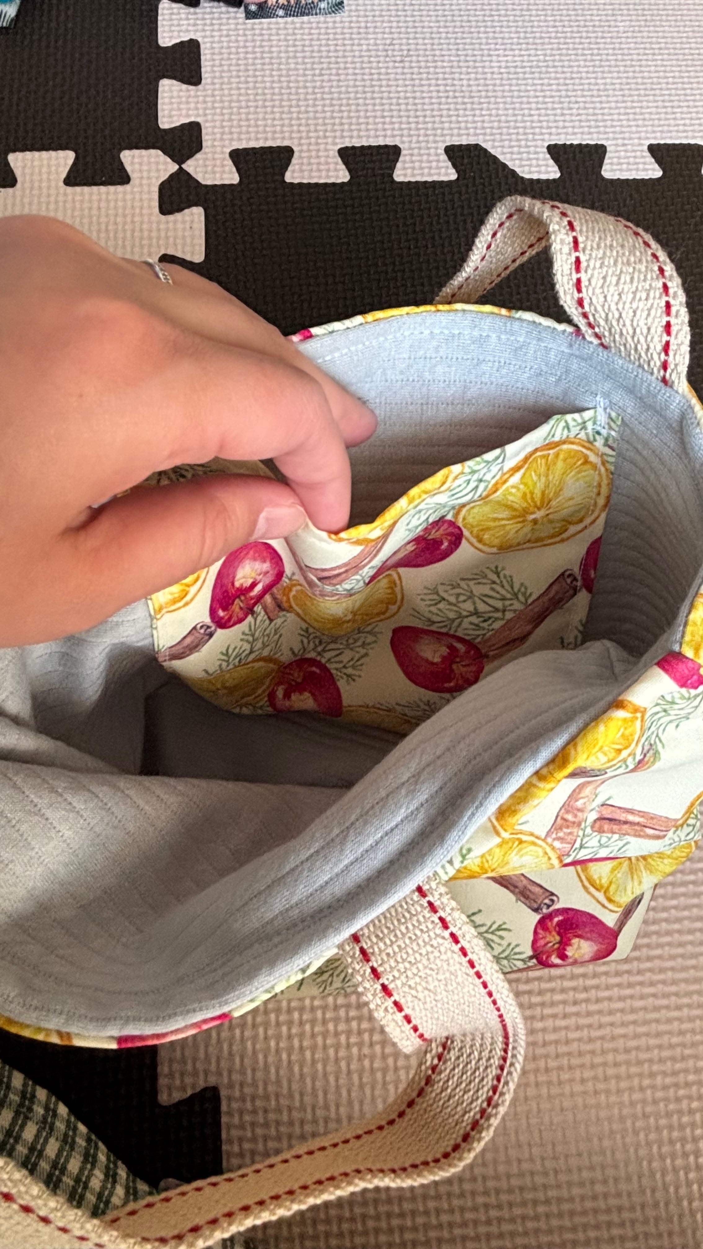 ランチバッグにちょうどいいサイズ感のトートバッグ リバーシブルで使えます! 送料込